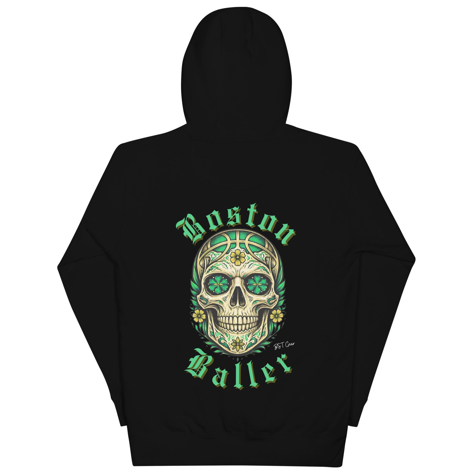 The front keeps it sharp with the BST Gear mark on the left chest. The back delivers the statement. A full-size Boston Baller graphic blends basketball culture with a bold Día de los Muertos-inspired skull design, giving this piece a collectible feel with real attitude.