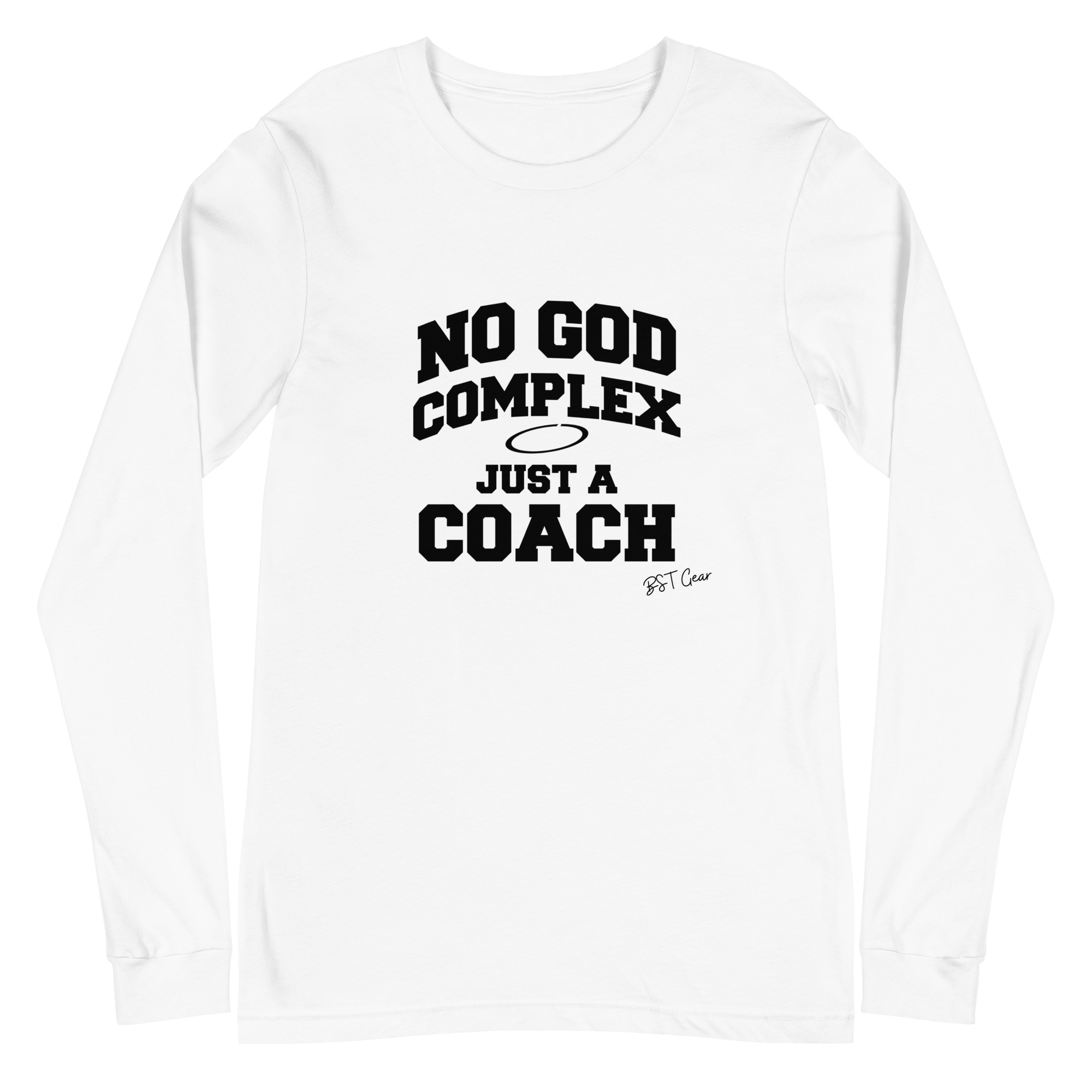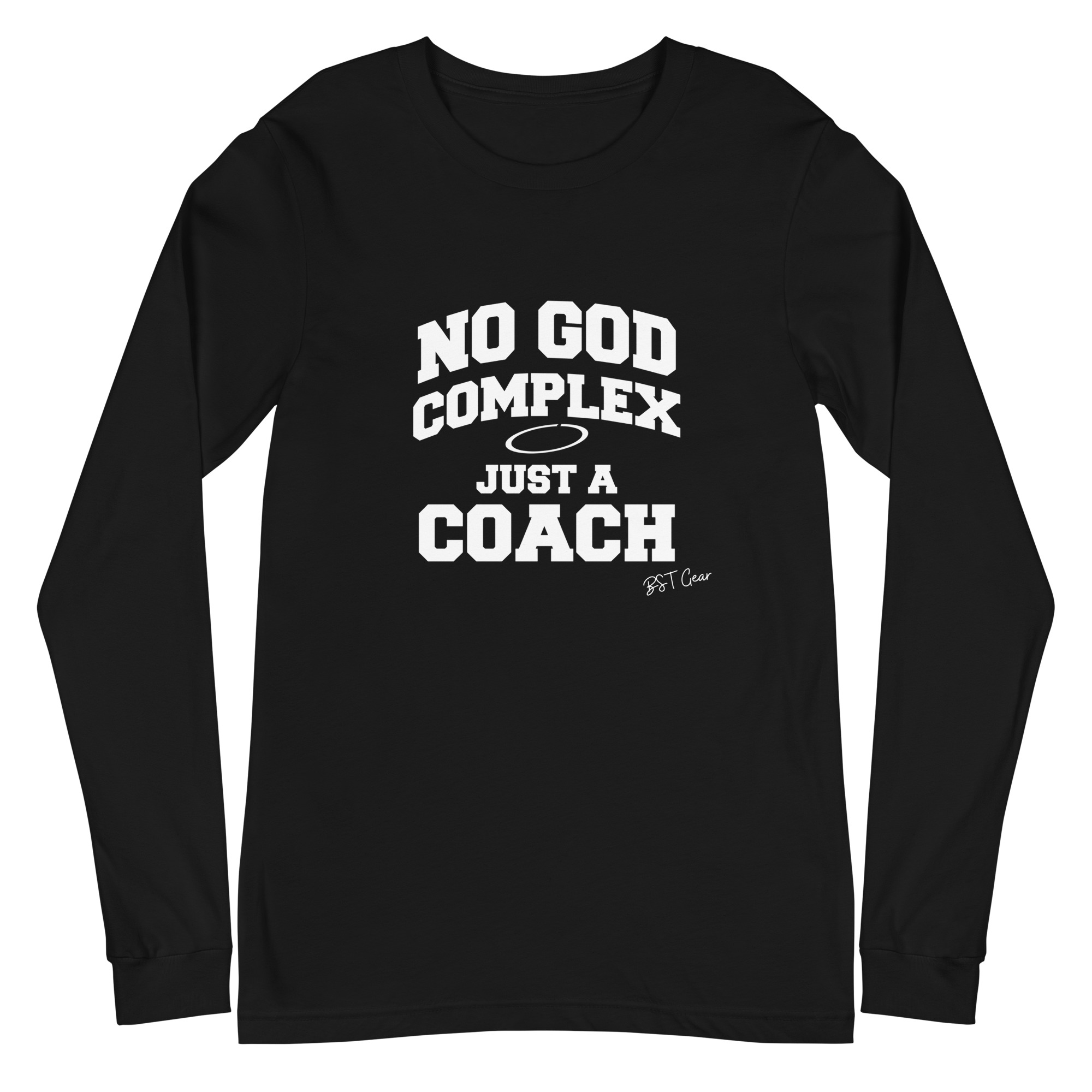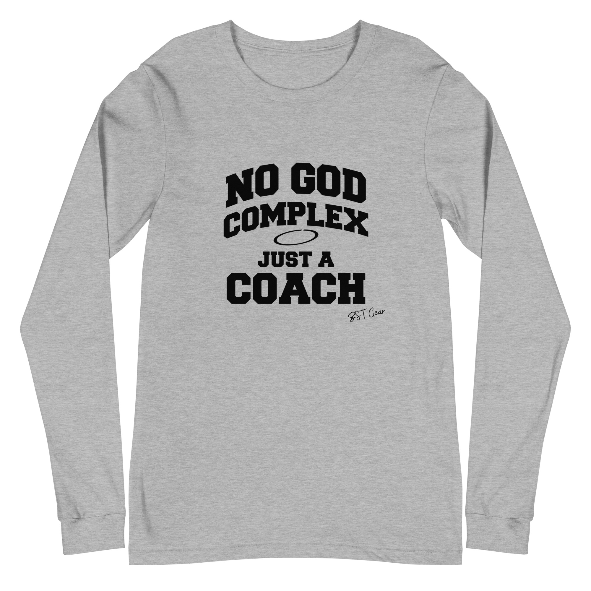 The “No God Complex — Just a Coach” long sleeve t-shirt is built for coaches who lead with preparation, discipline, and earned respect. The message is simple: leadership isn’t loud, it’s consistent.